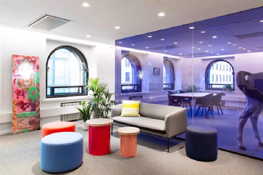 假如辦公沙發(fā)是3+1+1的組合方式,那么面對面的擺放,可以形成一種聚集和圍合的感覺,可以促進大家更多的交流,很適合接待客戶,或者人數(shù)比較少的小型會議。